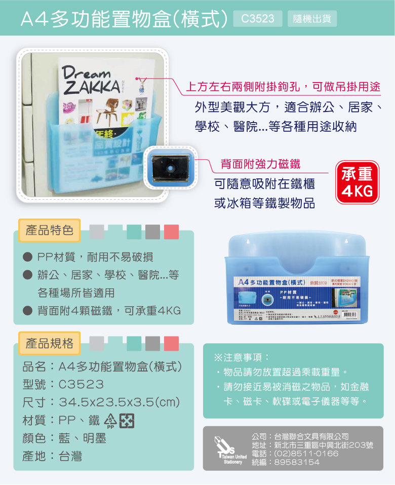 C3523 A4多功能橫式磁性置物盒|收納美學新境界
