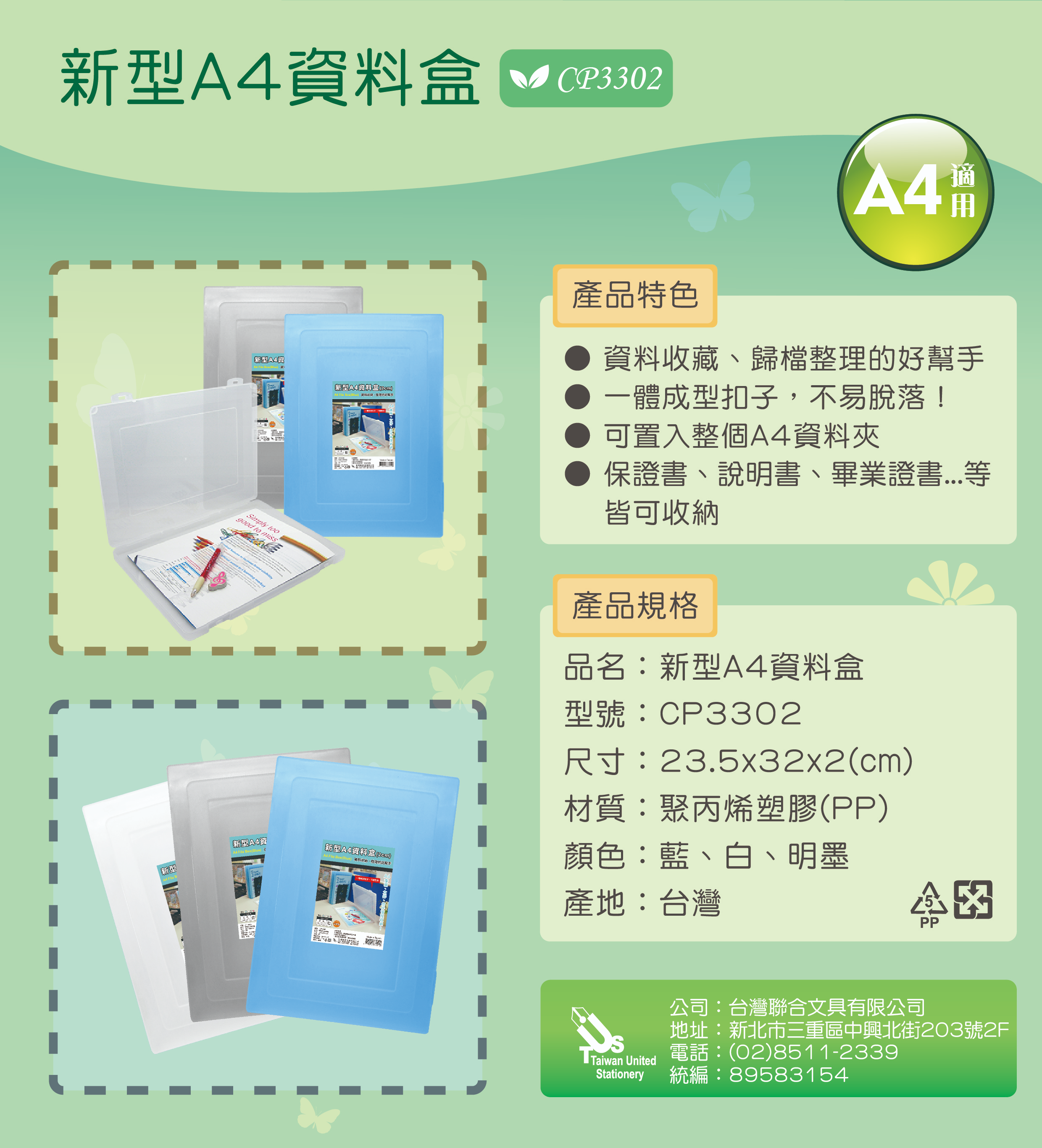 CP3302 A4二公分資料盒