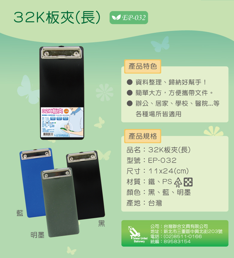 P-032 32K長板夾|輕巧長型,點餐巡檢好幫手!