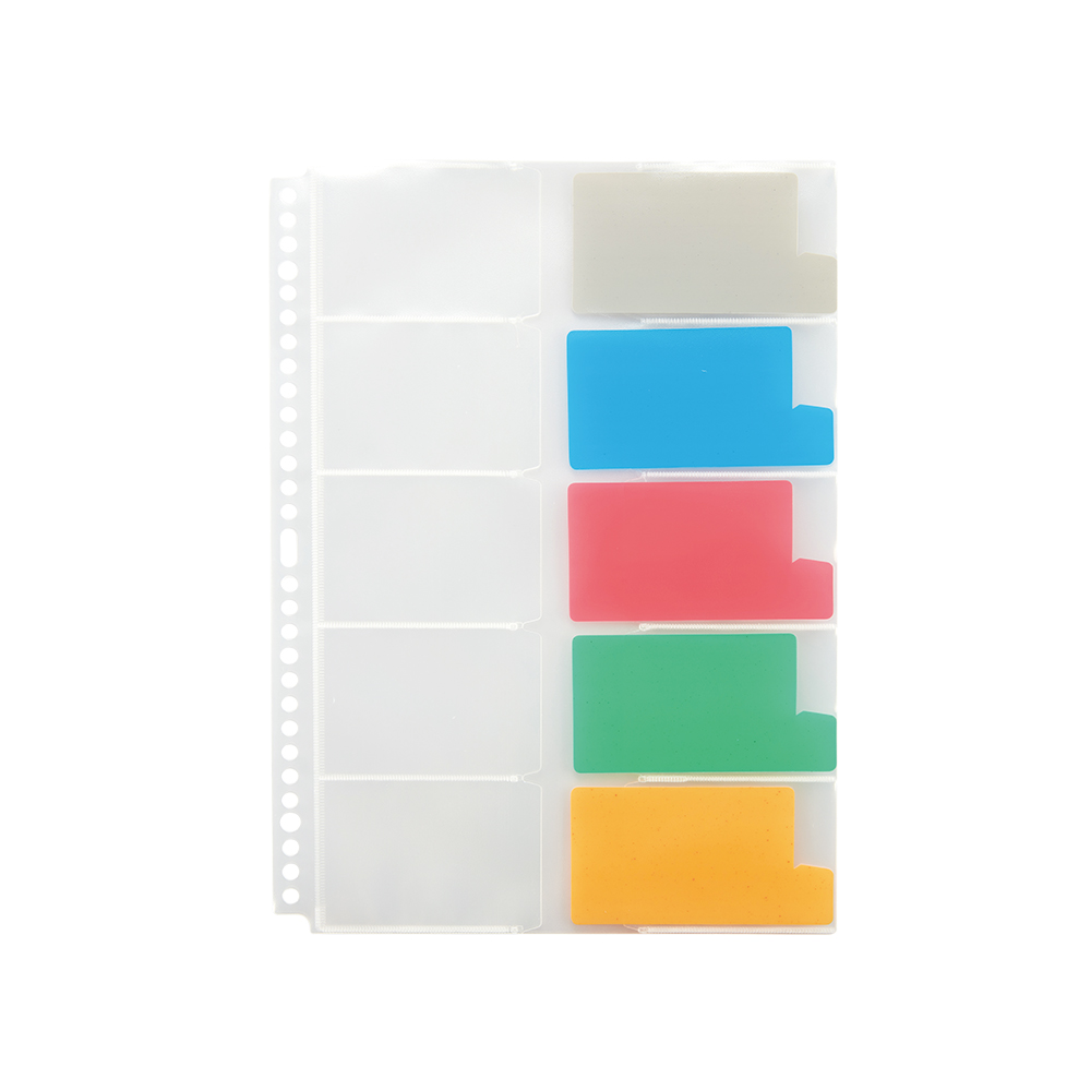 『添加方便 輕鬆收納』 採用PP環保原料製作 規格:300X220MM 10張/包. 30孔活頁設計內頁 單張單面可放10張名片 附5張(5色)索引卡 適用:Flying BNC-300、BNC-301名片簿 添加替補使用.