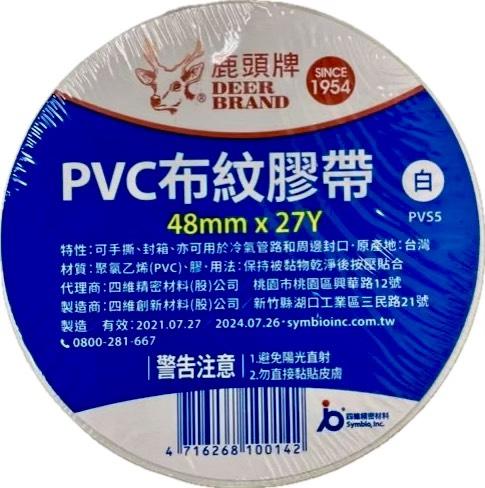 鹿頭 PVC布紋膠帶(48mm*27Y) PVS5 白色