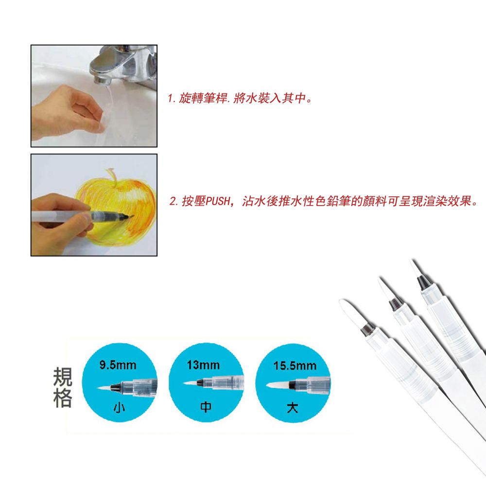 * 免攜帶洗筆筒、水彩筆,一隻搞定