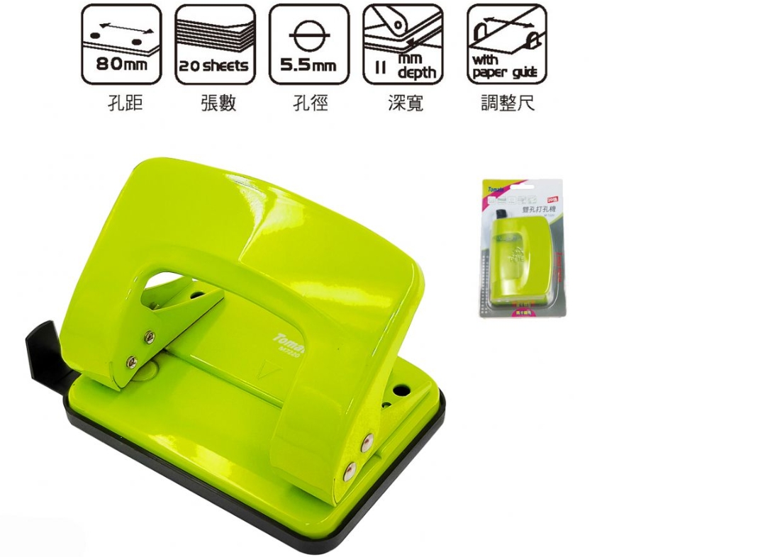 * 金屬材質,堅固耐用,打孔能力75g紙,20張,附調整尺,裝訂方便整齊。
