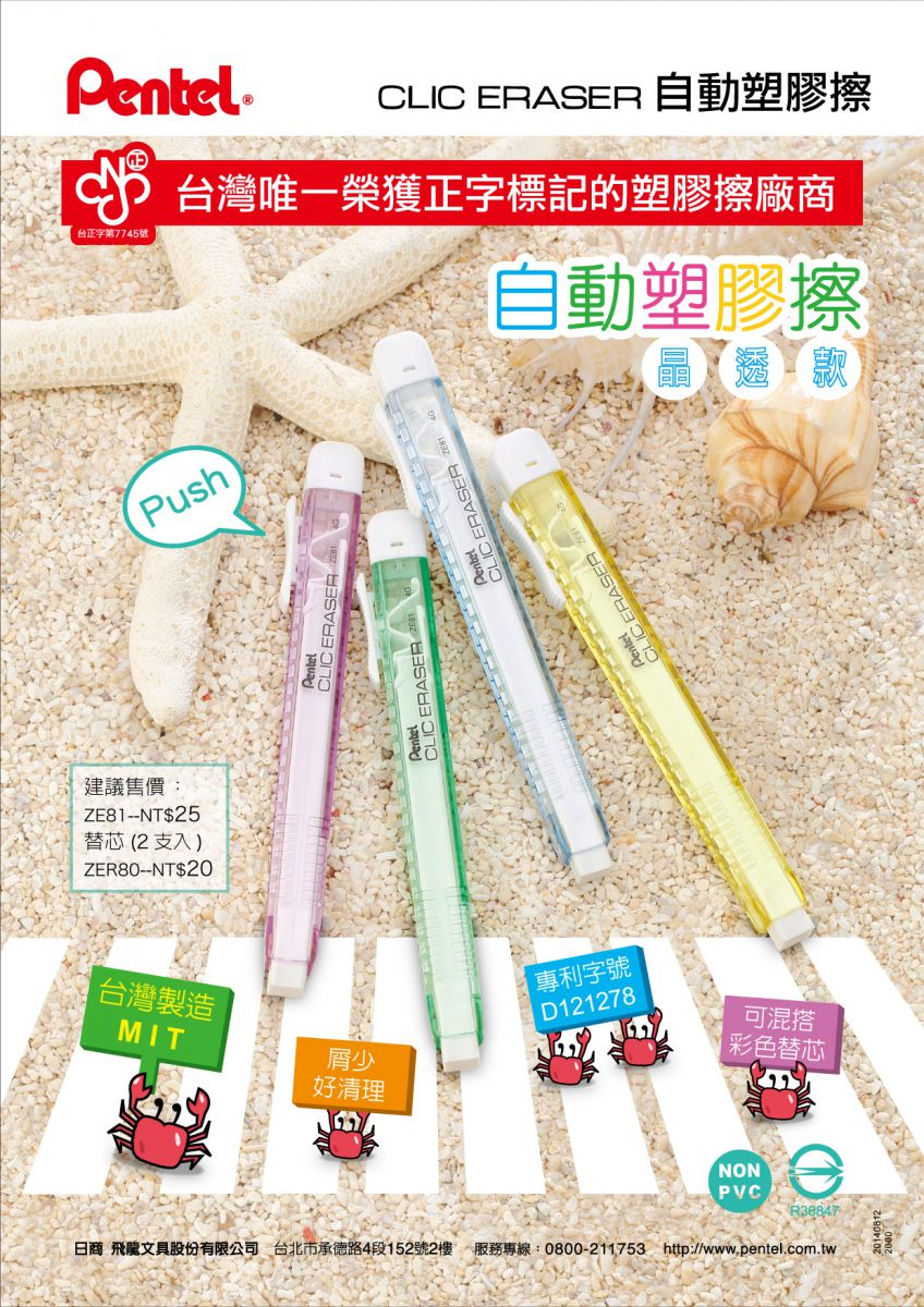 Pentel 飛龍 CLIC ERASER晶透自動橡皮擦 ZE81