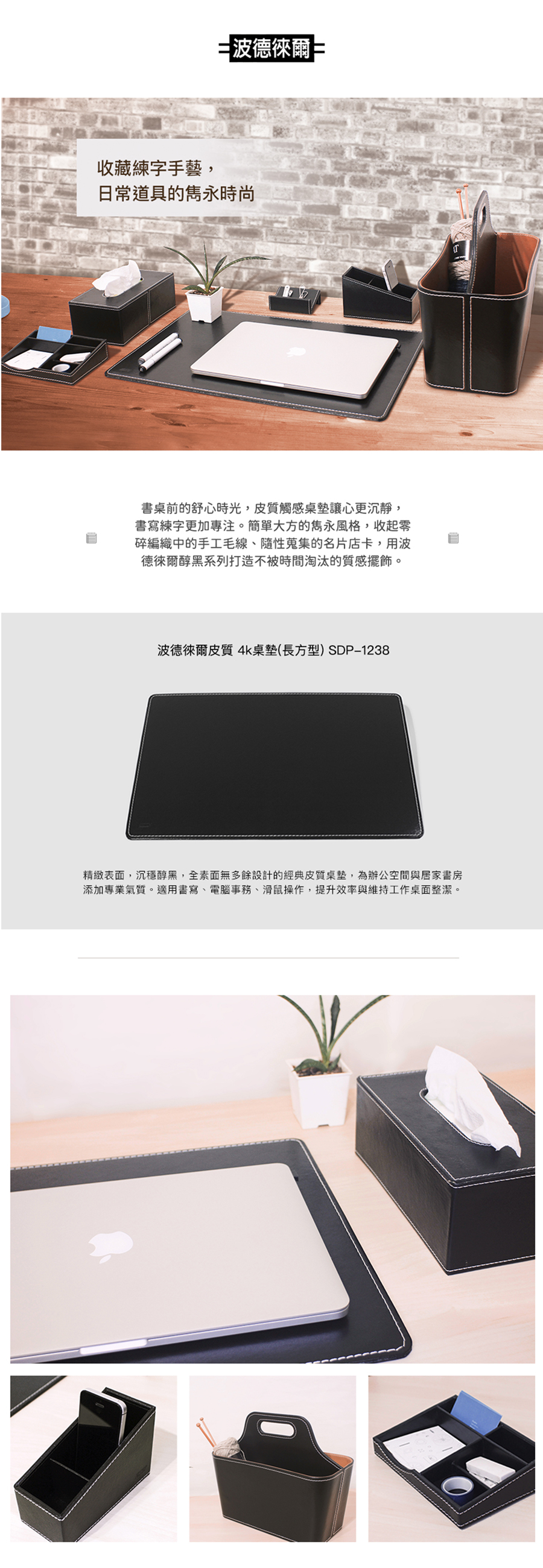 精緻表面,沈穩醇黑,全素面無多餘設計的經典皮質桌墊,
