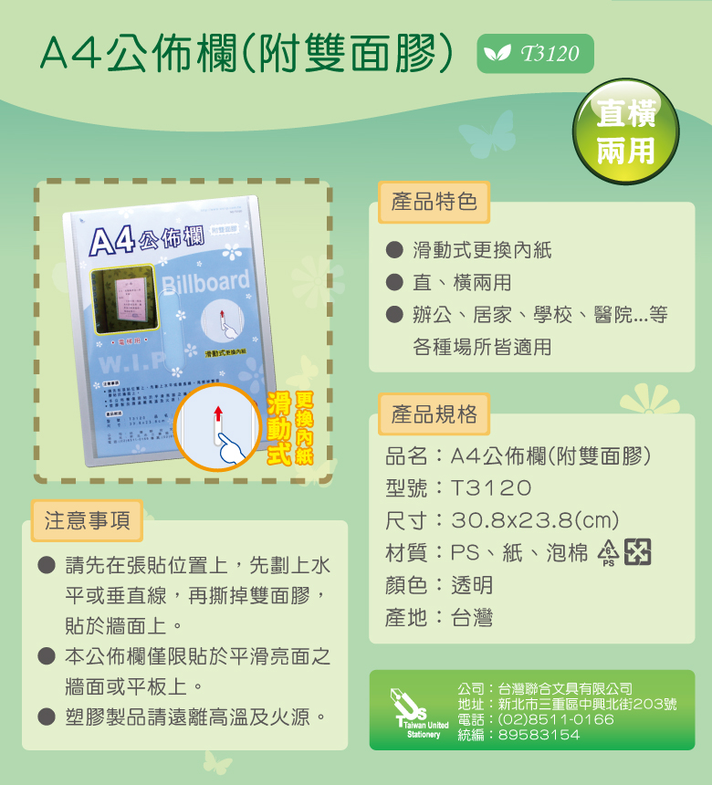 ▶T3120 A4公佈欄(附雙面膠)A4公佈欄、公告欄、佈告欄、通告欄、張貼欄、廣告展示板、辦公室公告、社區電梯公告、學校課表、醫院張貼欄、商場活動、大樓公告、公共空間展示、公告、通知、廣告、張貼