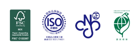響應綠色環保採購政策,使用通過FSC™國際驗證的負責任紙漿,並獲得國家環保標章認可。