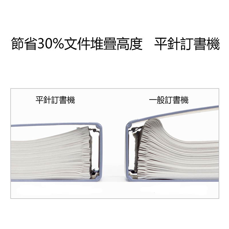 3. 平針設計,讓資料堆疊時裝訂部分不會突起。