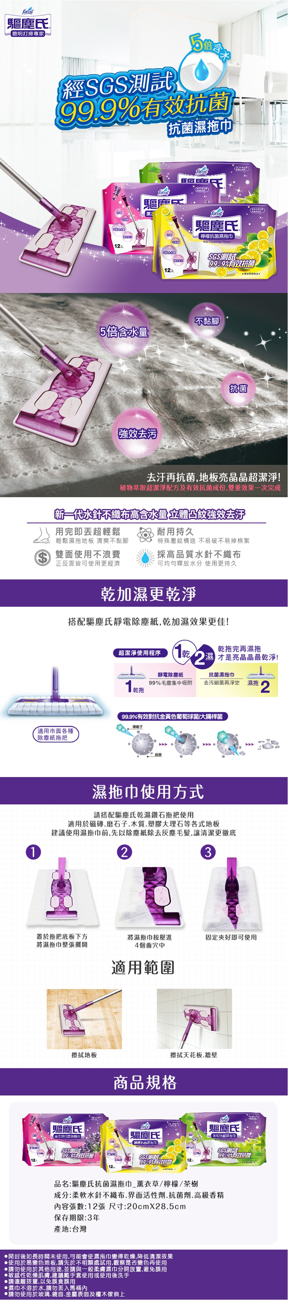 驅塵氏抗菌濕拖巾 檸檬(12張)