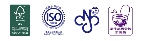 紙張符合CNS1091可分散性測試標準,如廁適量使用,安心不阻塞。