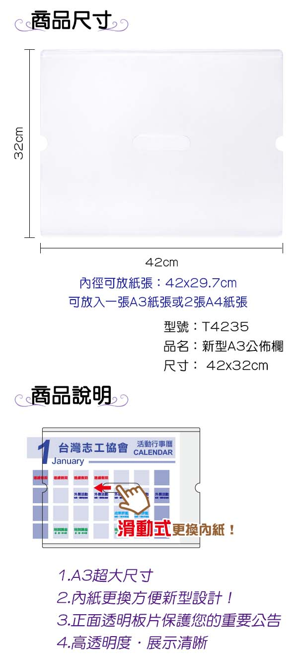 T4235 A3公佈欄|大尺寸展示,公告清晰高效展示!