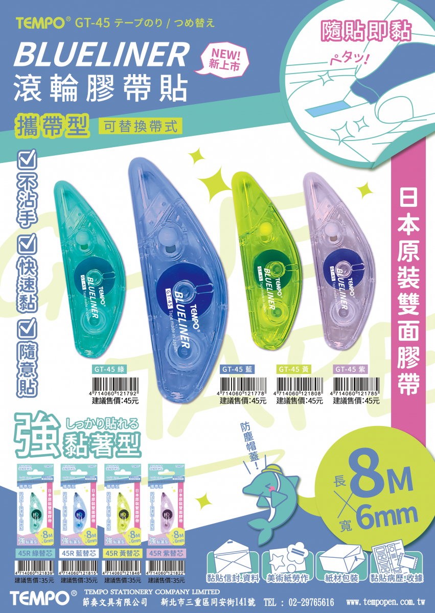 TEMPO 滾輪雙面膠帶貼(6mm*8M) GT-45