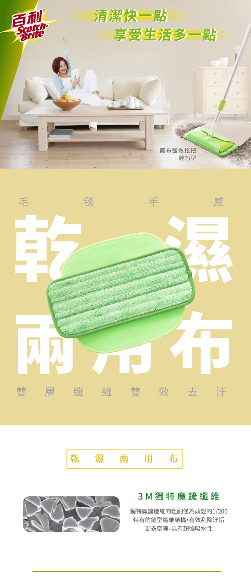 內容:拖把桿1支+乾濕兩用布1片
