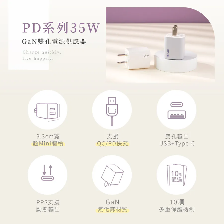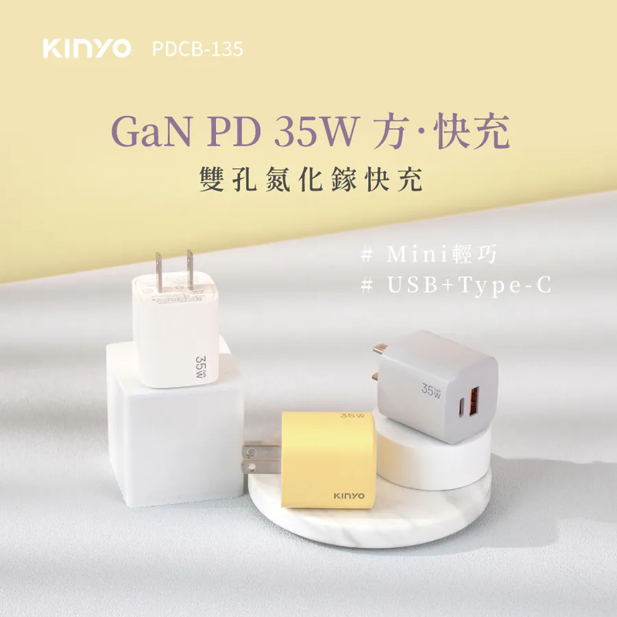 KINYO 氮化鎵雙孔充電器35W (PDCB-135)*特價*