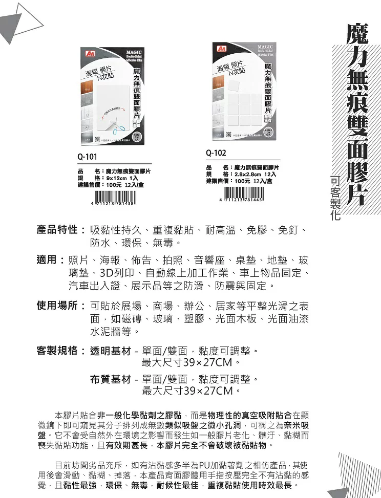 A+A 魔力無痕雙面膠片9*12cm/片 Q-101