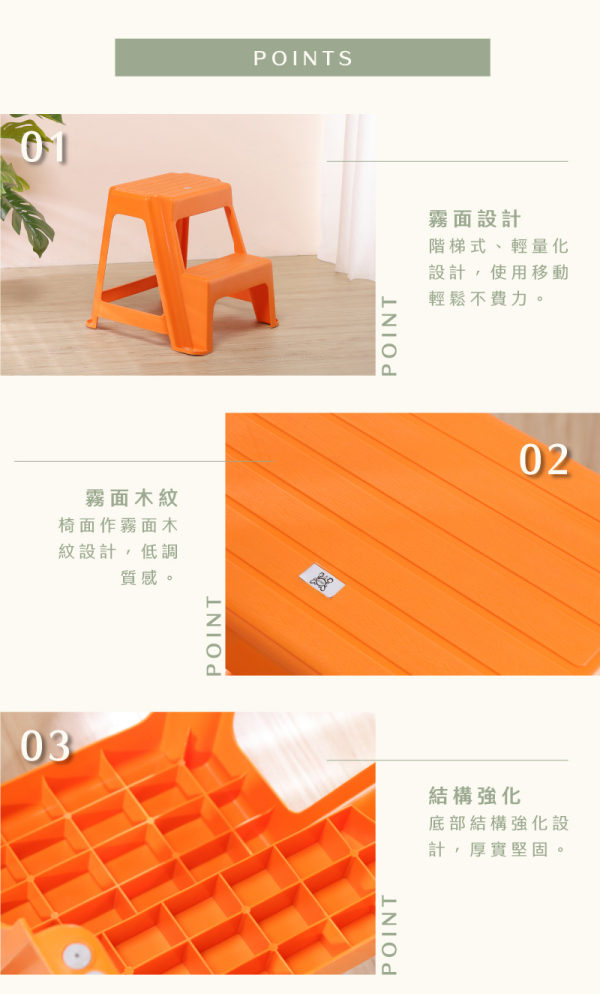 階梯式設計,上下不費力 椅面霧面,