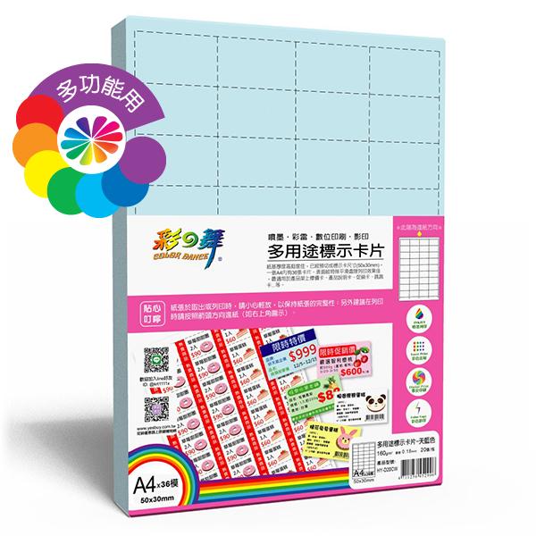 產品特性: 紙基厚度高挺度佳,已經預切成標示卡尺寸(50x30mm),一張A4內有36張卡片。表面經特殊平滑處理列印效果佳,最適用於產品架上標價卡、產品說明卡、促銷卡、跳跳卡...等。