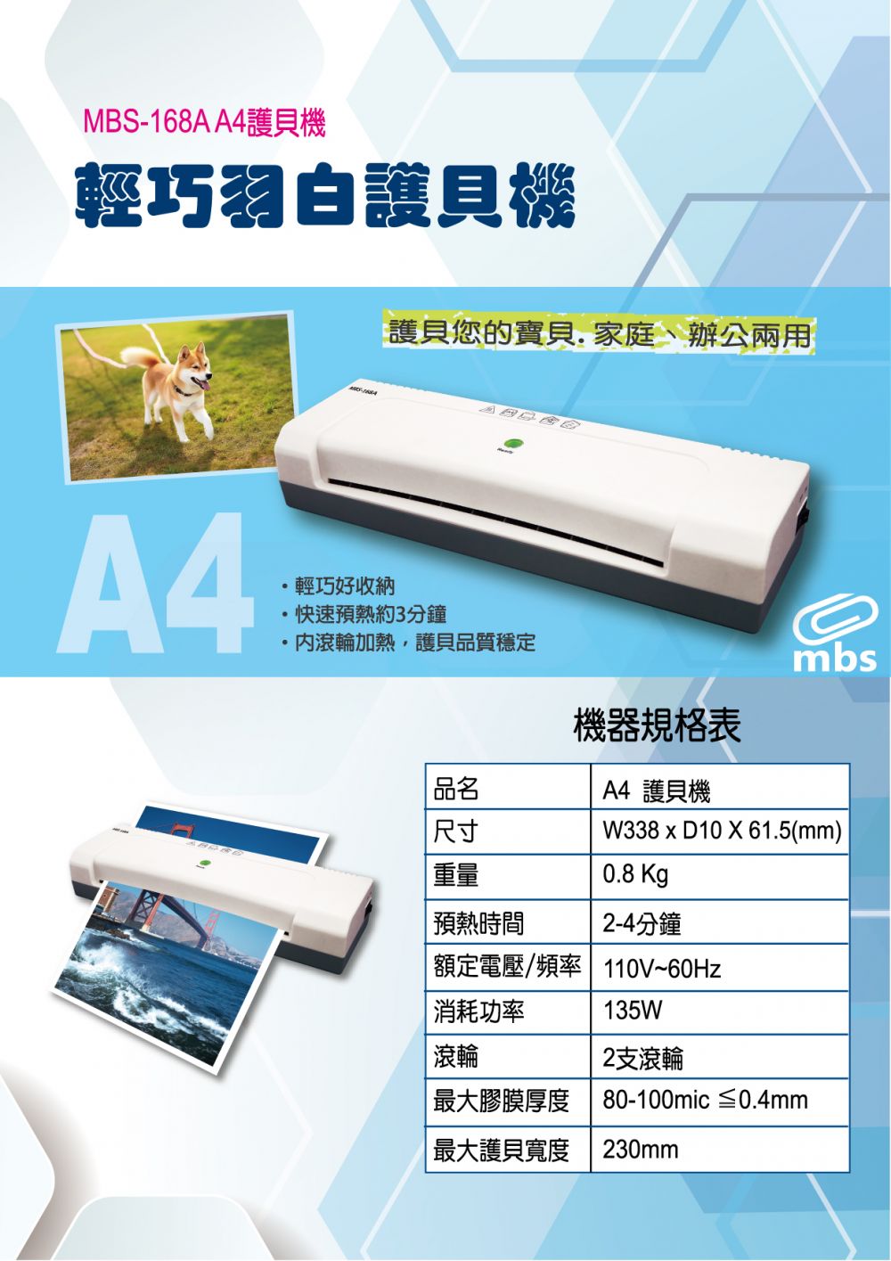 * 內滾輪加熱,護貝品質穩定