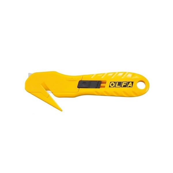 刀片暗藏於刀把獨特之4m/m"鵝頸"處,使得要裁切的物品(如包裝膜)可以伸入至切割的刀片處。